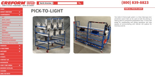 Creform Material Handling Systems offers a unique pick to light system that can work alongside your installed WMS to better streamline your warehouse picking strategies. It’s lightweight, easy-to-use design fits well in a variety of settings including warehouses and kitting operations.