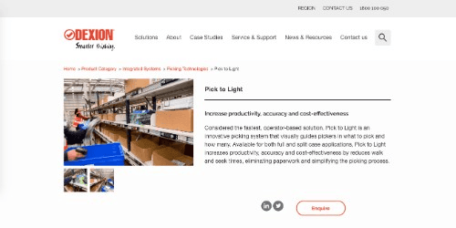 UK-based Dexion offers a classic pick to light system that is completely adaptive for both split and full case applications. This system also focuses on increasing productivity and efficiency through reducing walk and seek times, eliminating paperwork, and simplifying the picking process so that it can be easily learned quickly by new hires.