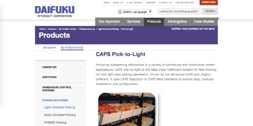 Daifuku’s CAPS Pick-to-Light offers warehouses and distribution centers the ability to incorporate highly-accurate, efficiency-based techniques into their standing split case picking operations. CAPS Pick-to-Light boasts an impressive amount of benefits including ROI attainment after only 12-18 months following initial installation and electrical overhead requirements cut in half. It’s also been proven to increase picks at twice the speed of paper-based systems, while reduces errors by 80%.