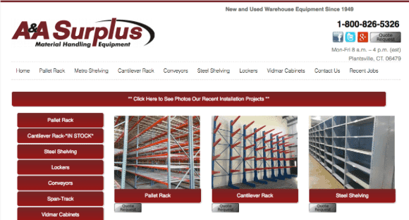 A&A Surplus sells both new and used racking, and ships anywhere in the United States. Its primary focus, however, is on its used pallet rack.