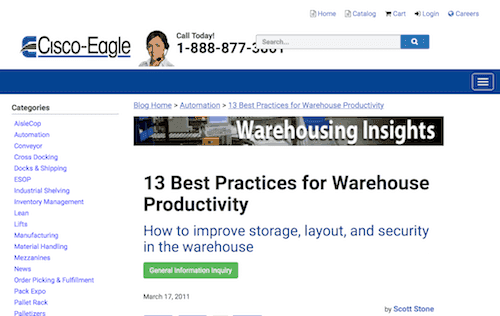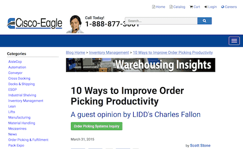 In this Cisco-Eagle article, Scott Stone encourages you to determine how your order picking productivity matches up against industry averages. He also emphasizes the need to know metrics for picking rates.