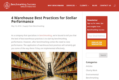 Benchmarking Success is a supply chain benchmarking company specializing in benchmarks reports and key performance indicators (KPIs). Their warehouse best practices article shares picking tips to become more cost effective and enhance customer service while improving overall operational performance.