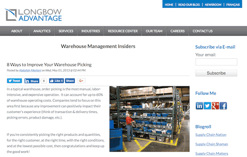 A senior supply chain management consultant and author of several books on using enterprise resource planning (ERP) software for the supply chain, Martin Murray shares his tips for reducing picking time in this article for The Balance. As martin points out, improving picking practices increases productivity and overall customer satisfaction.