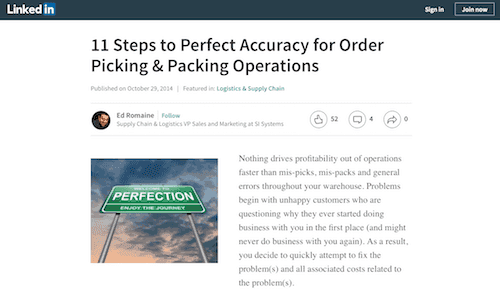 Supply chain and logistics VP of sales and marketing at SI Systems, Ed Romaine points out that picking errors harm profitability and customer satisfaction in his LinkedIn article. He details the process for improving order picking processes, including beginning with your organization's culture and determining the tools and equipment you need to perfect picking.