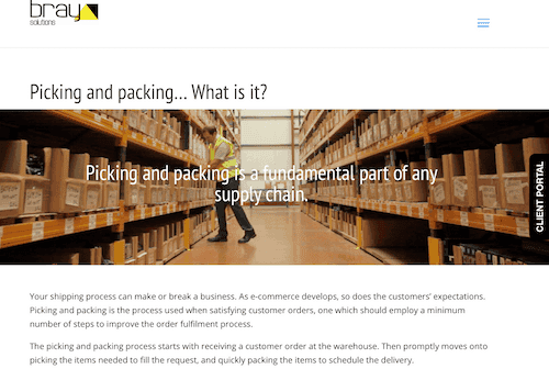 One of the UK's leading third party logistics providers, Bray Solutions handles fulfillment, pick and pack, logistics, and warehouse storage options. This Bray Solutions article asserts that picking and packing are fundamental parts of the supply chain that can make or break a business because they must be done accurately and efficiently to meet customers' expectations.