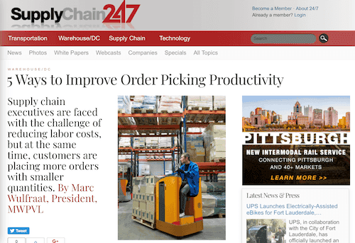 Supply Chain 24/7 is the online business resource for transportation, distribution, logistics, and supply chain professionals. Writing for Supply Chain 24/7, MWPVL International Inc. president and founder Marc Wulfraat explores the challenges supply chain executives face in reducing labor costs while customers place more orders with smaller quantities.
